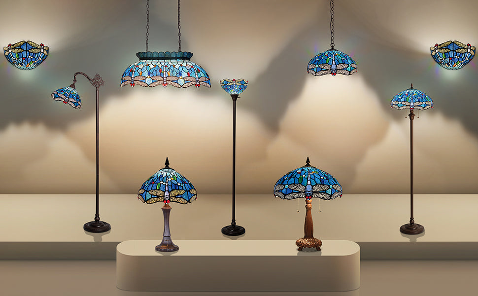 Capulina Tiffany Pendant Light Antique Dragonfly Style Stained Glass Hanging Lamp - Blue VictorianVendor: CapulinaProduct Details: Size: lamp shade16 inches wide and 68 inches Height,And the chain is 60" long can be flexibly adjusted. Real Tiffany Glass: each stained glass of the lampshade is welded together by soldering tin at high temperature,easy to identify,plastic can't afford high temperature...