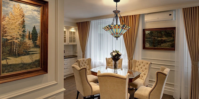 ARTZONE Tiffany Pendant Light Fixture[3 Lights][14''Wide*Adjustable Height] Stained Glass Tiffany Hanging Chandelier for Kitchen Island Dining RoomVendor: ArtzoneBrand ARTZONE Color Blue Material Glass Style Tiffany Light fixture form Pendant About this item [Upgraded Version Tiffany Pendant Light Detail] The old version was 2 lights, and now it's upgraded to 3 lights, which can brighten your room better. 14 inch Wide lampshade....