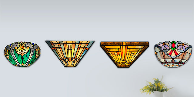 Thatyears Tiffany Style Wall Sconce Lamp-12'' Stained Glass Mission Tiffany Sconces Wall Lighting for Living Room Bedroom Corridor HallwayVendor: ThatyearsBrand Thatyears Color Cream Crytal Material Glass Style Tiffany Light fixture form Sconce About this item TIFFANY WALL SCONCE LIGHTING in 12 inch Wide by 6 inch Tall and 6inch Depth. This upwards wall light comes with 100% handmade stained glass lampshade and hardwired....