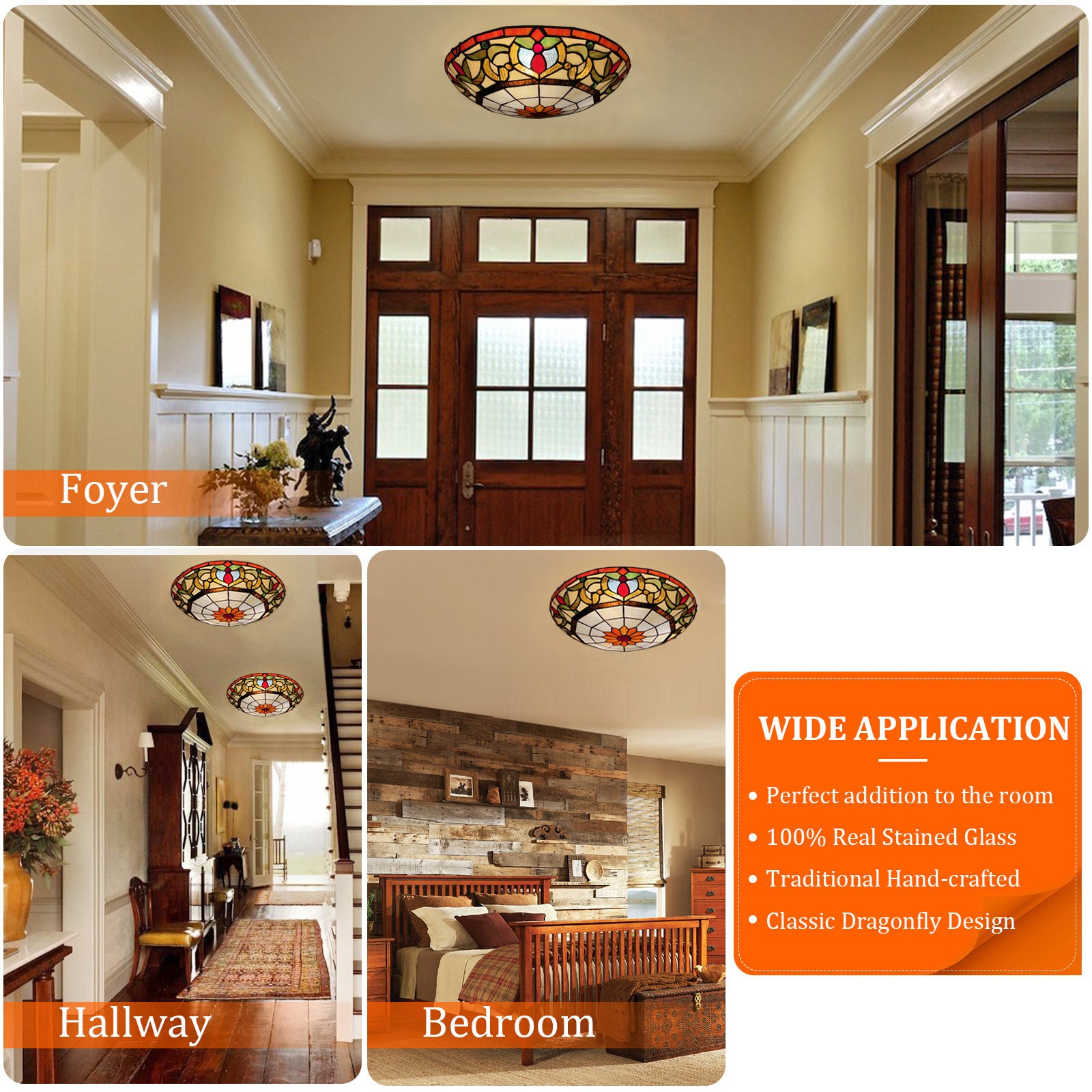 [Stunning Tiffany Ceiling Light] Let this great looking tiffany light fixtures ceiling decor your room! Wide 16 inch and height 4.5 inch, the perfect size makes it not too big and fit any room, it will become a gorgeous addition to home remodel.