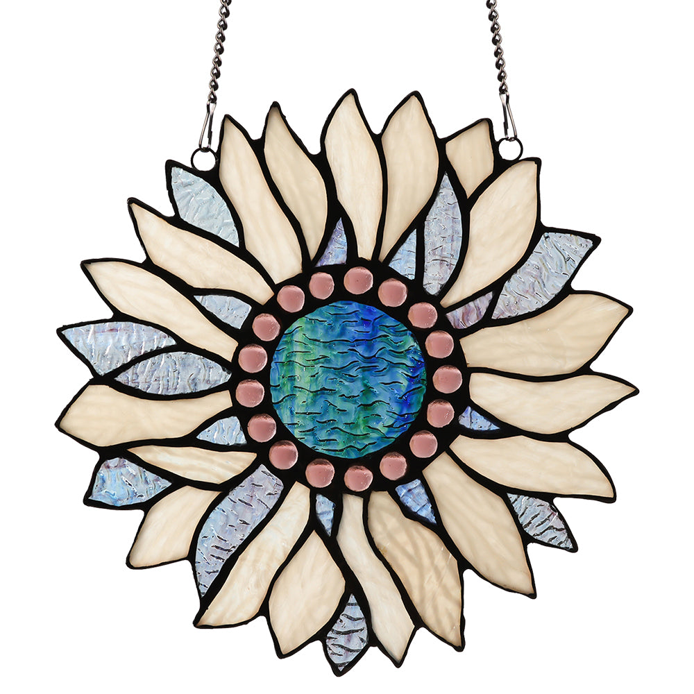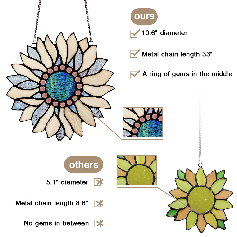 Sunflower stained glass window treatments take on the most beautiful colors in the sunlight