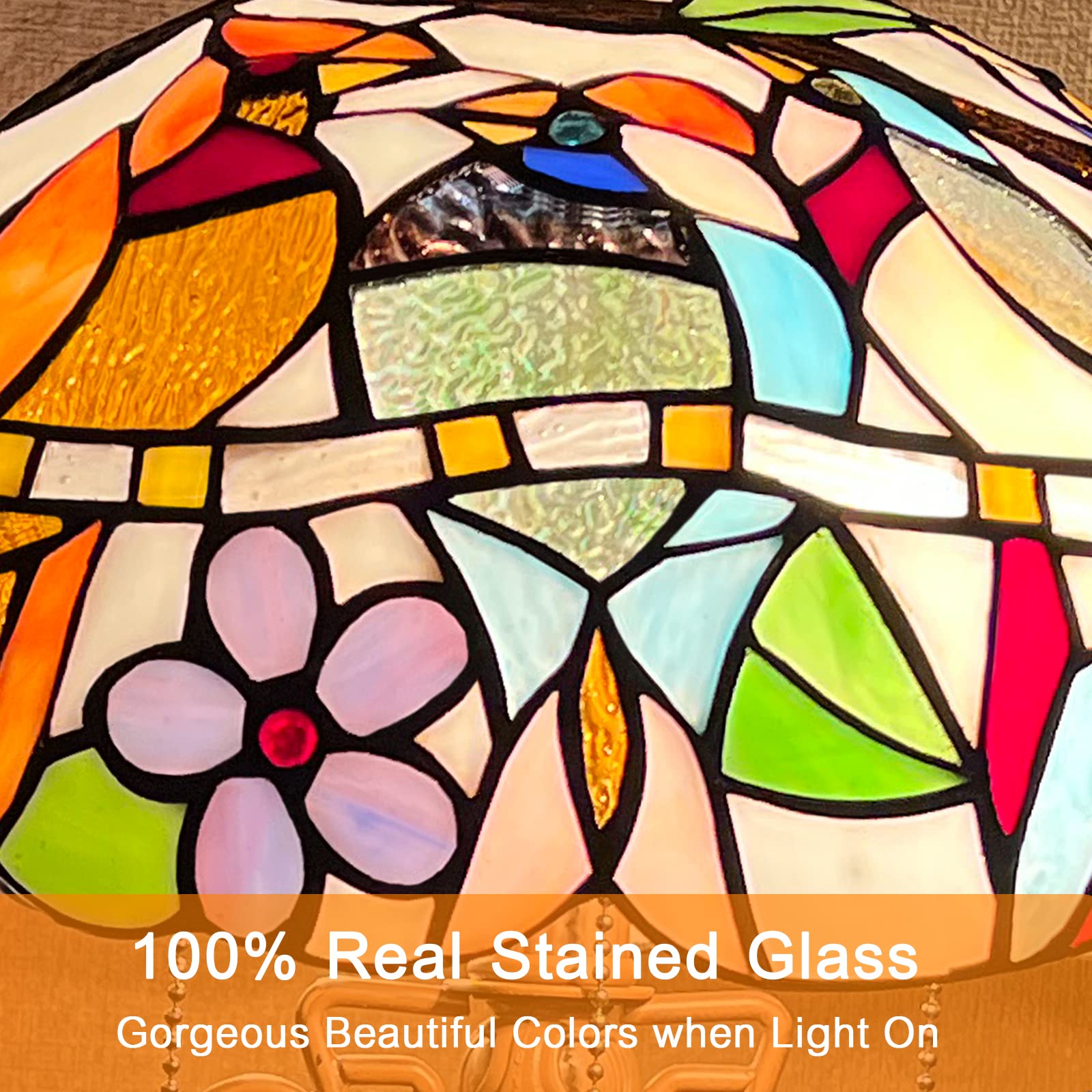 | Special Feature | 100% real tiffany stained glass handmade lampshade and the color never fade |