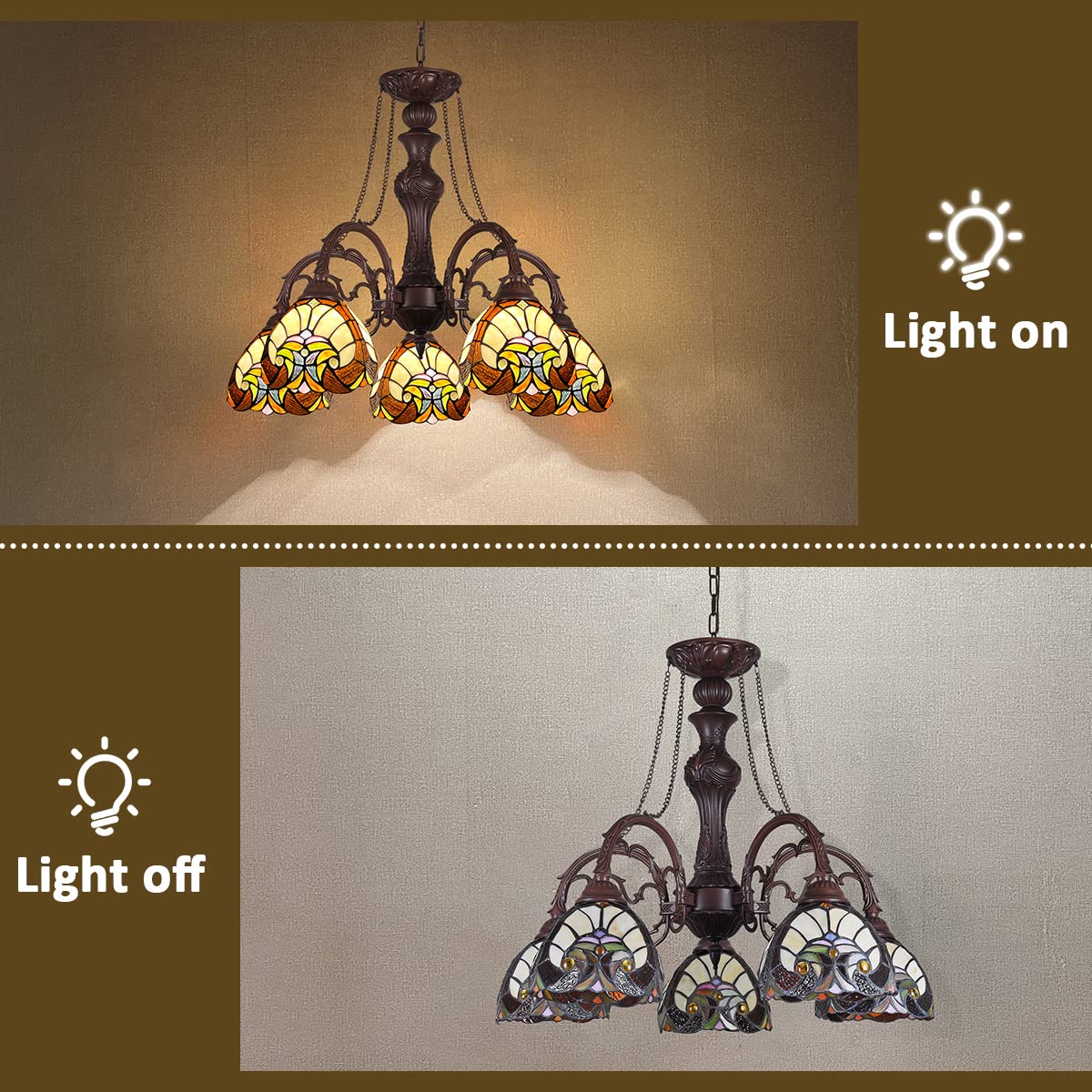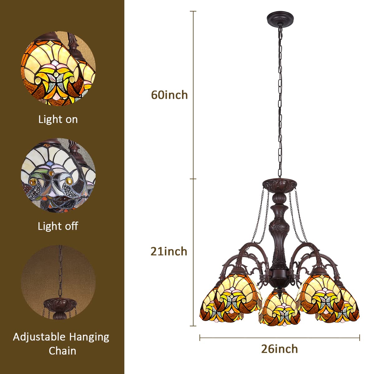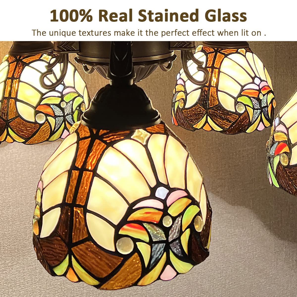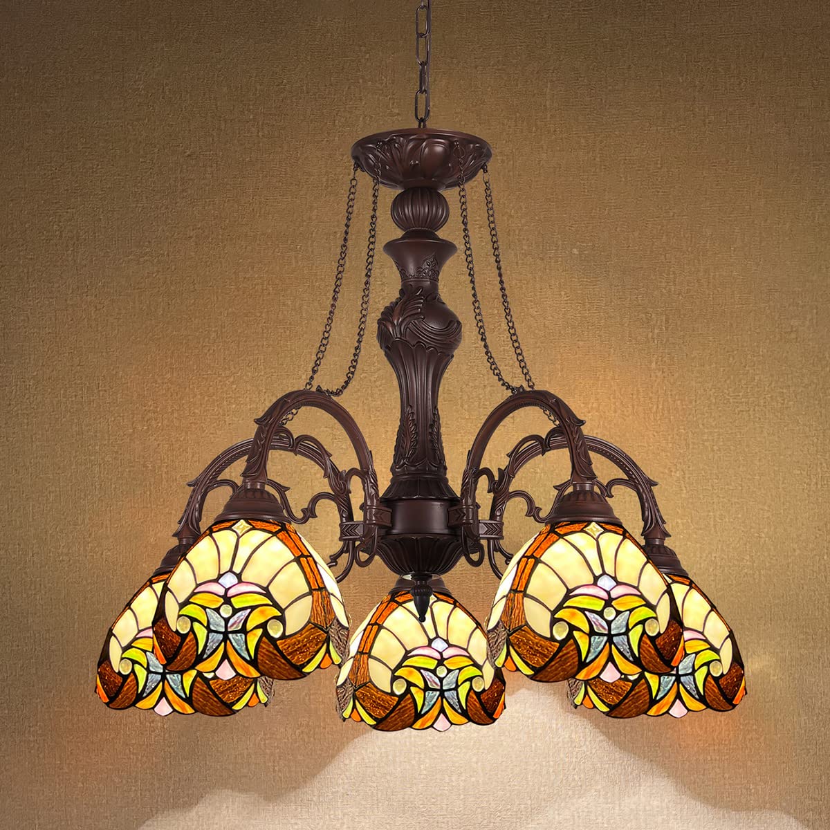 COTOSS Tiffany Hanging Chandeliers for Dining Room 5 Lights Stained Glass Kitchen Lighting Fixtures Antique Style Ceiling Pendant Lamp for Living Room Lobby Entryway