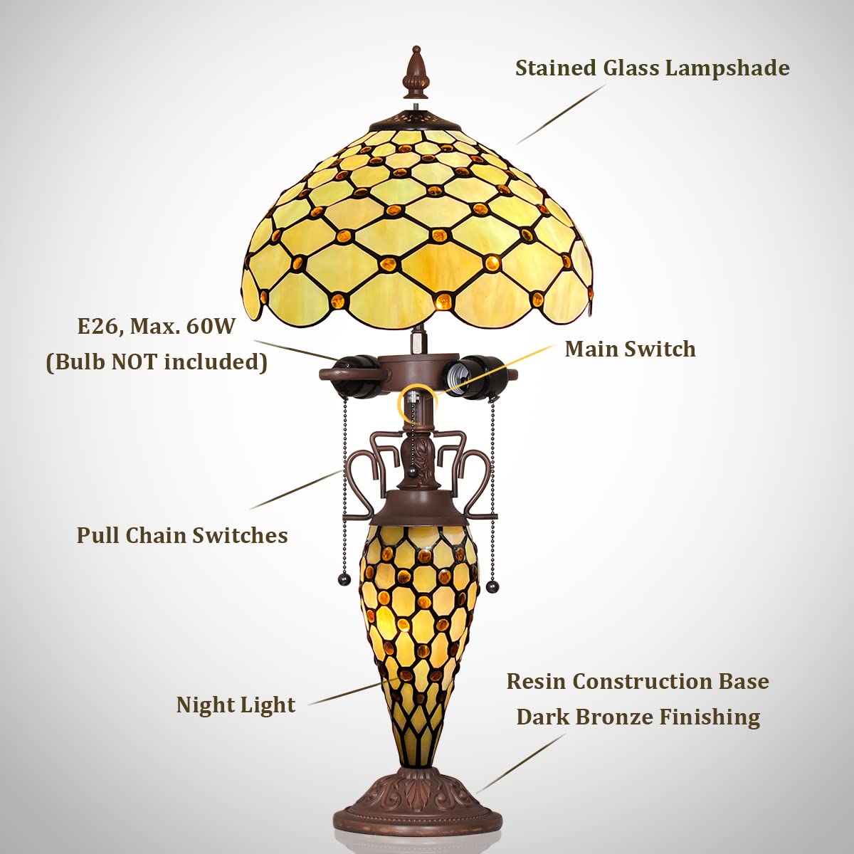 | Special Features | Pure hand craft tiffany lamp, Eye-care light emission, Never fade real stained glass, Easy installation, Unique color and pattern design |