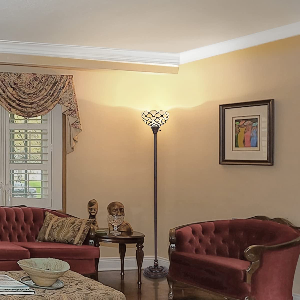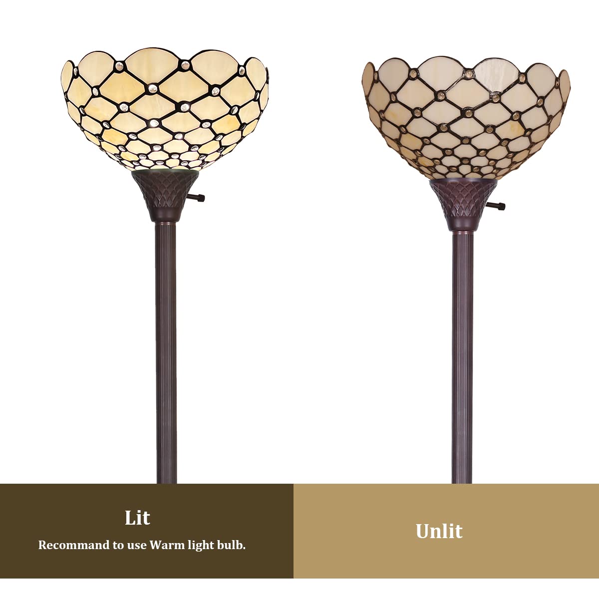 | Special Feature | Pure hand craft tiffany lamp, Eye-care light emission, Never fade real stained glass, Easy installation, Unique color and pattern design |