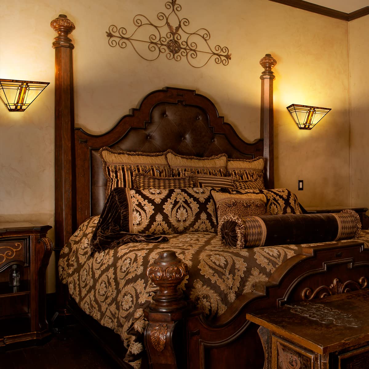 ?The Best Choice to Decor Home Office:This tffany wall light fixtures is a must-have in the arts and handicrafts style of decoration. each lamp shade display both meticulous attention to detail and inherent interest in nature. when you light bulb up,shrouding our rooms with dazzling, dancing colorful light.